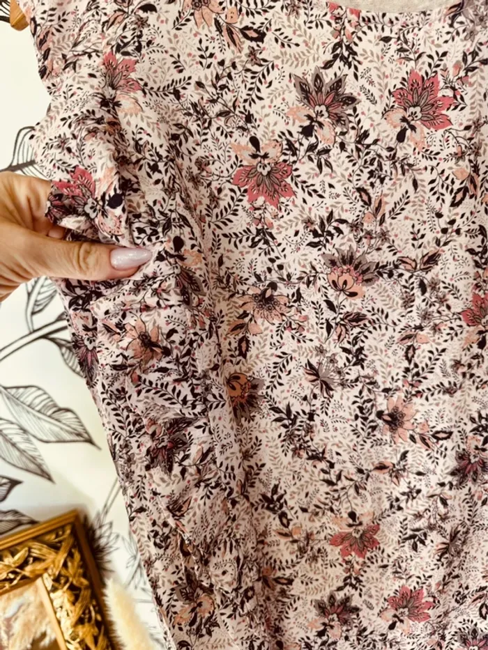 Taille 38 ~ M blouse / teeshirt femme Camaïeu beige et violet * floral * 🌷