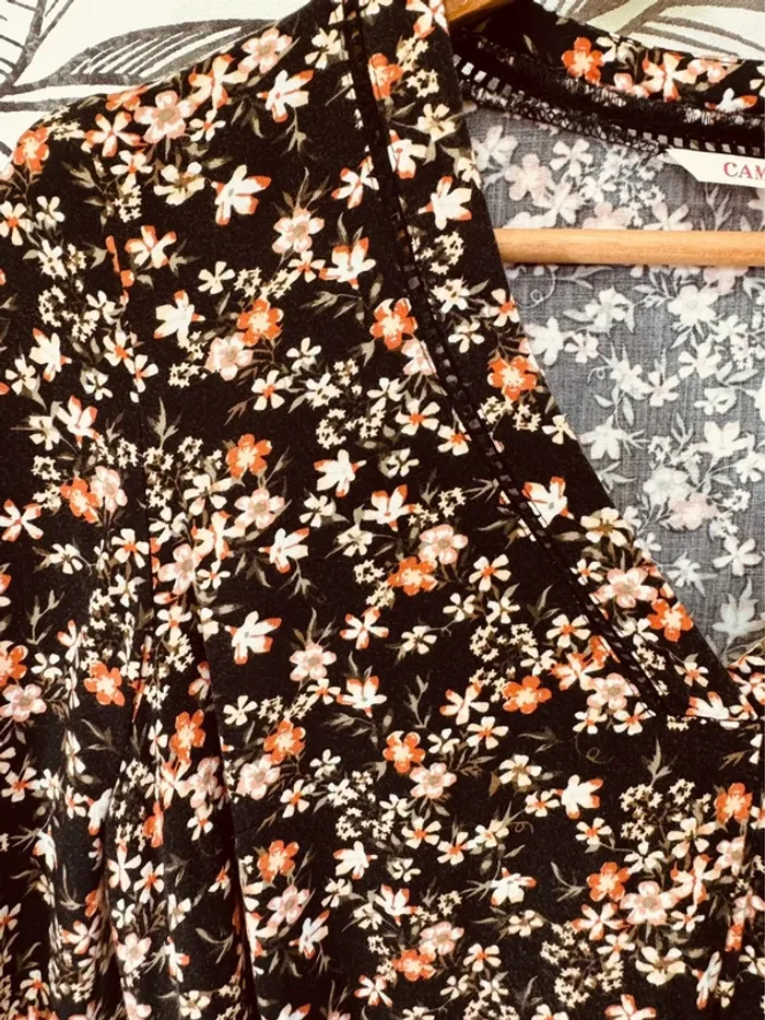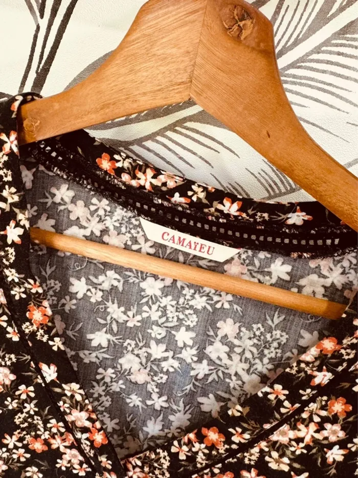 Taille 36 ~ S robe légère et fluide femme Camaïeu noire et camel * fleurs * 🌷 - photo numéro 3