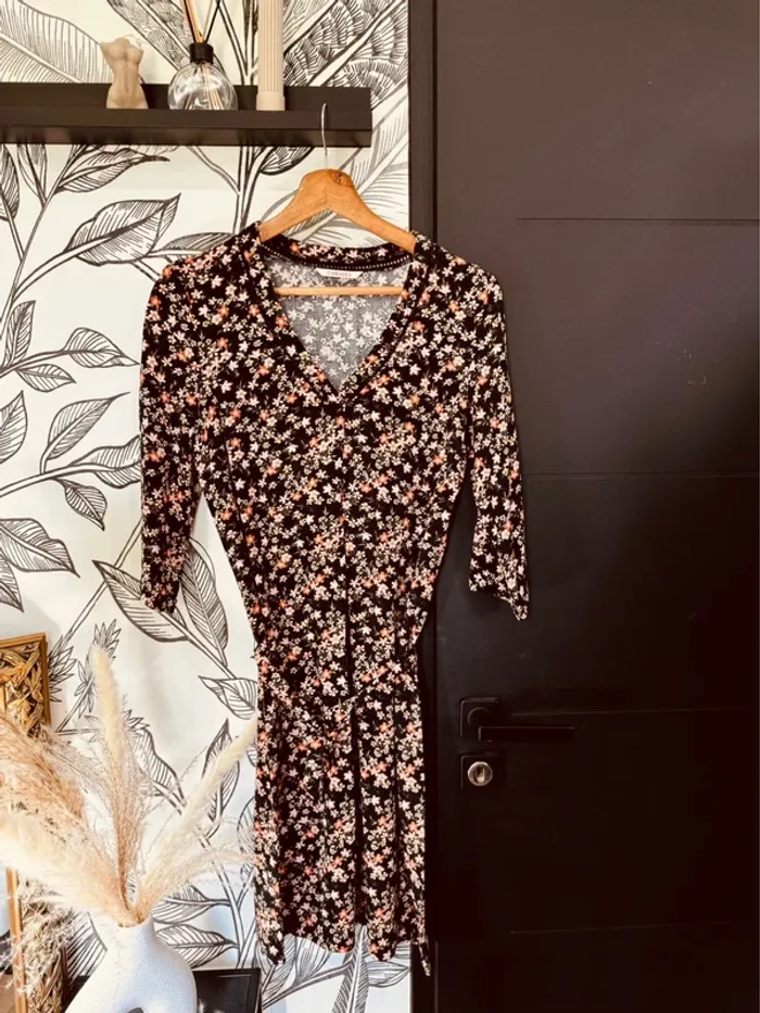Taille 36 ~ S robe légère et fluide femme Camaïeu noire et camel * fleurs * 🌷 - photo numéro 4