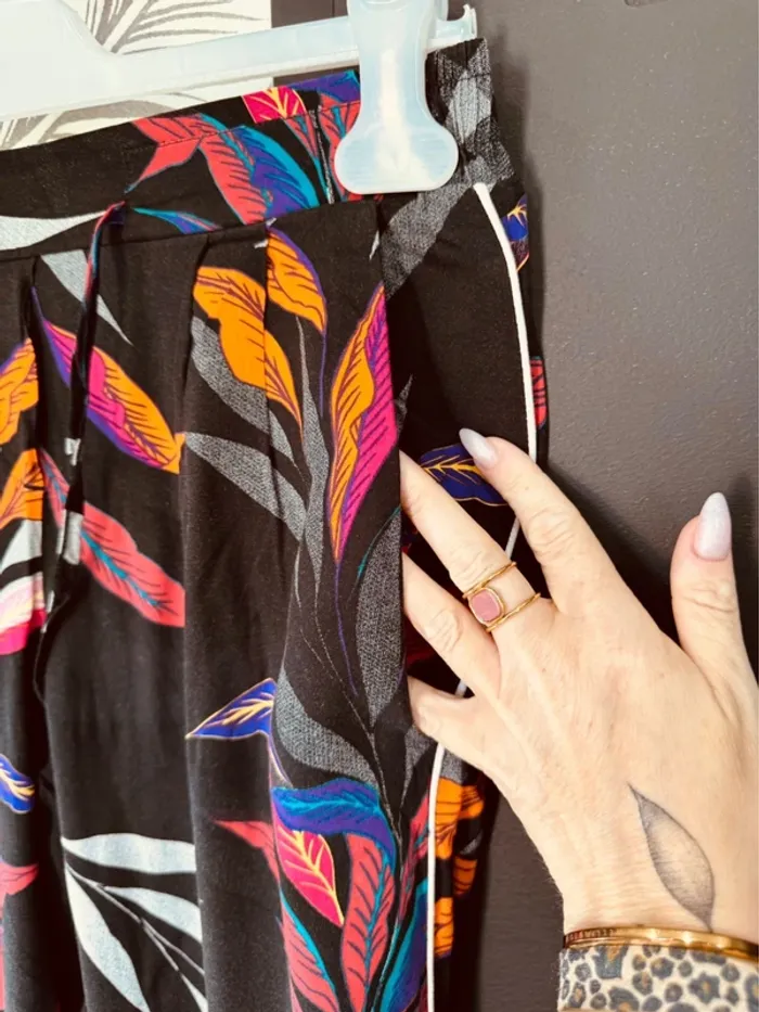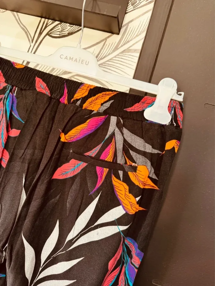 Taille 36 ~ S pantalon léger et fluide femme Camaieu noir rose orange 🌺 - photo numéro 9