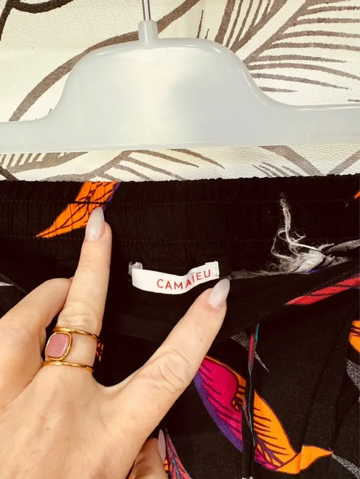 Taille 36 ~ S pantalon léger et fluide femme Camaieu noir rose orange 🌺 - photo numéro 3