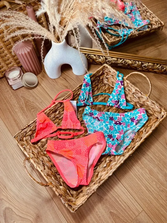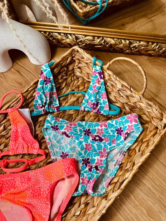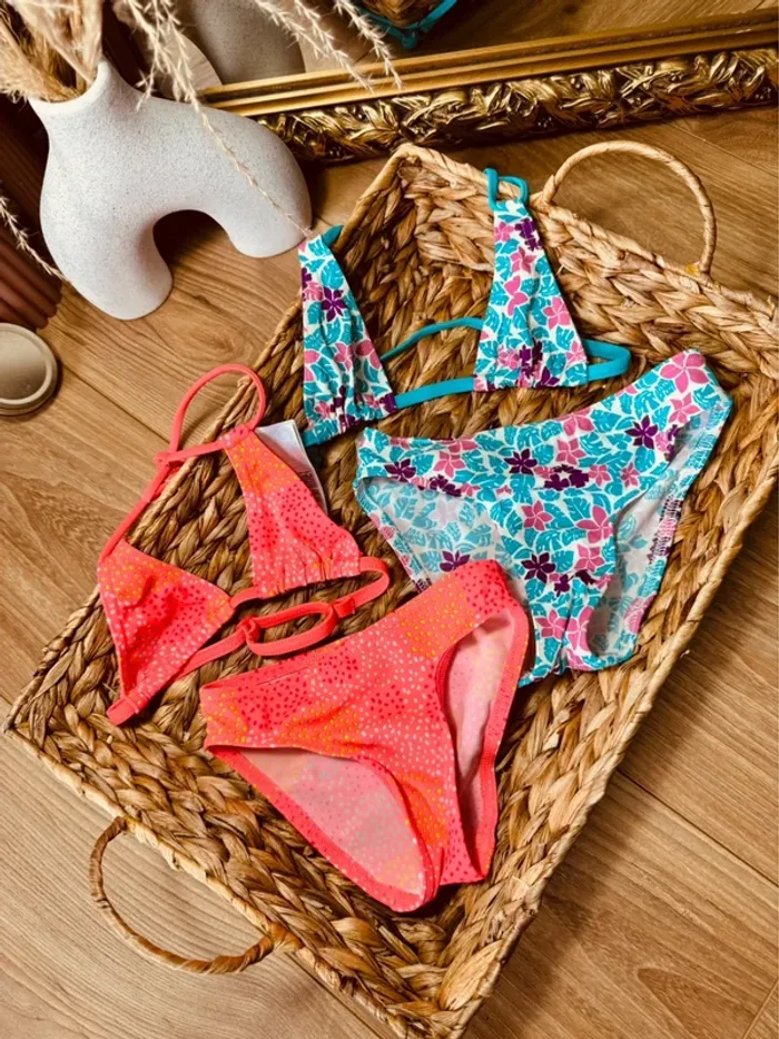 Taille 4 ans lot de 2 maillots de bain 2 pièces fille Décathlon bleu et rose fluo 🌸 - photo numéro 1