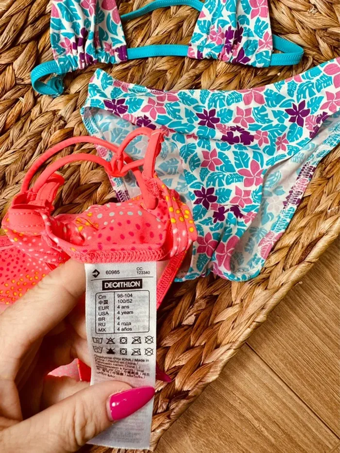 Taille 4 ans lot de 2 maillots de bain 2 pièces fille Décathlon bleu et rose fluo 🌸