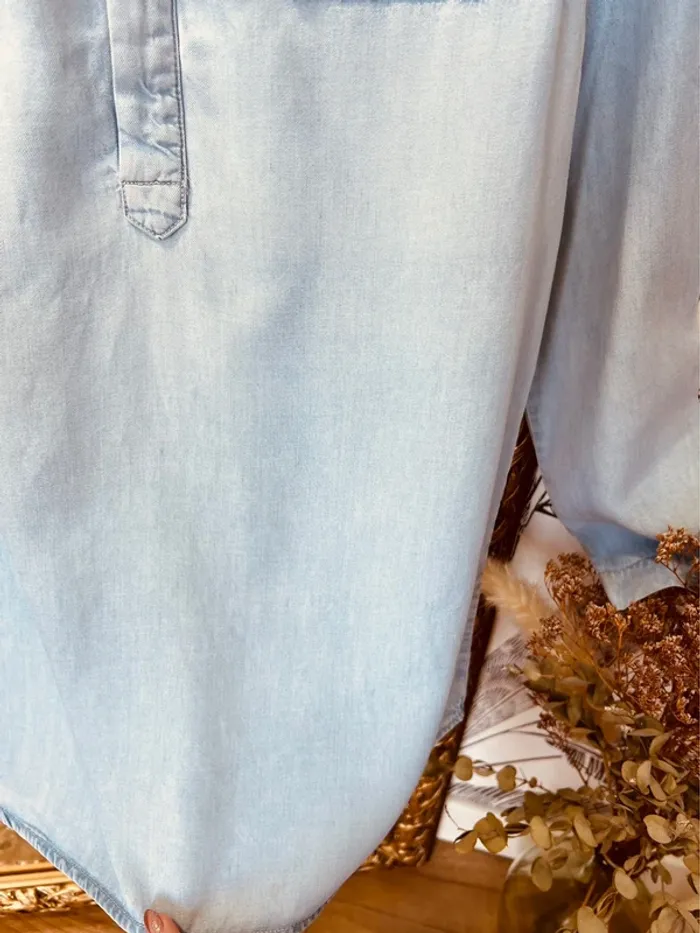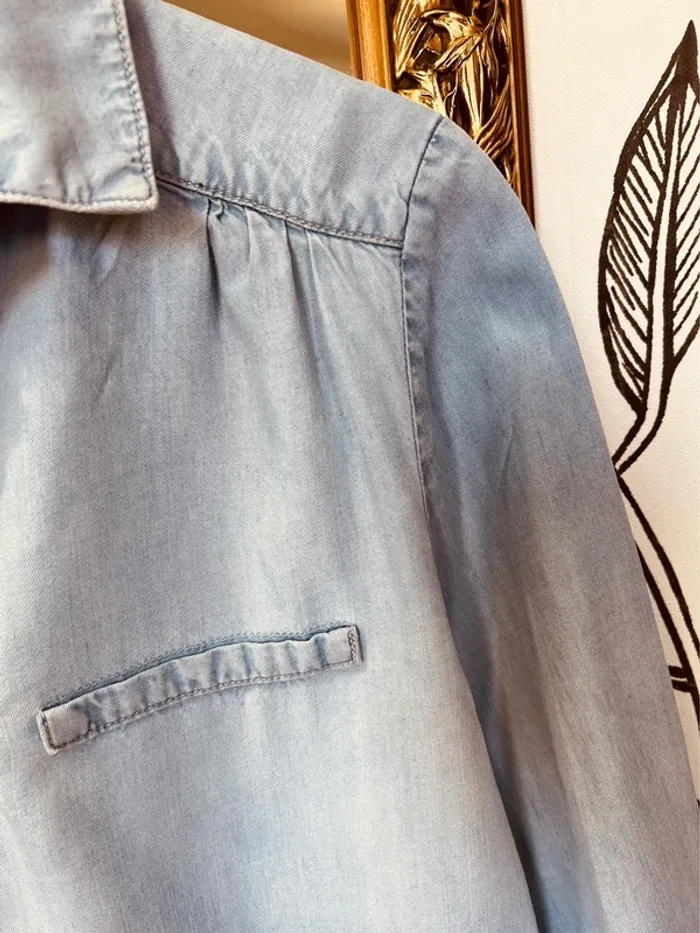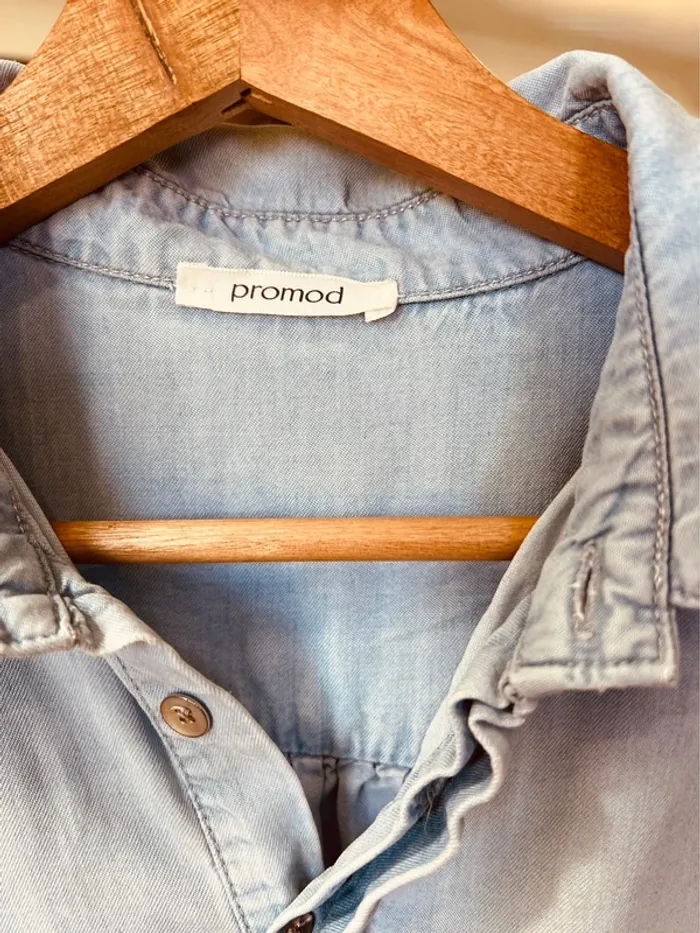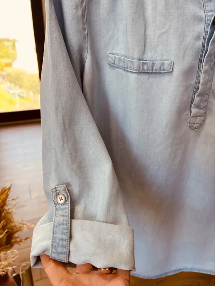 Taille S ~ 36 blouse femme Promod bleue manches 3/4 jean souple 🌺