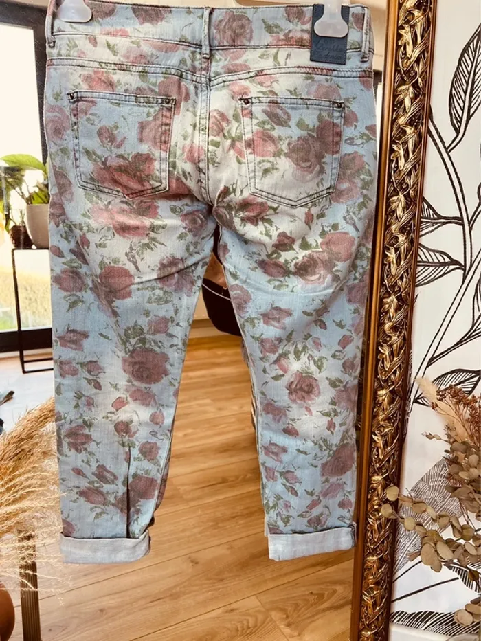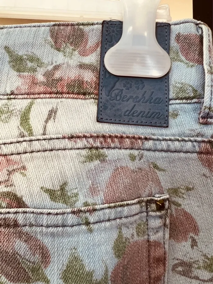 Taille L ~ 40 jean femme Bershka bleu à fleurs 🌺 - photo numéro 1