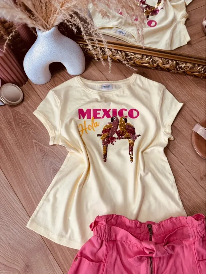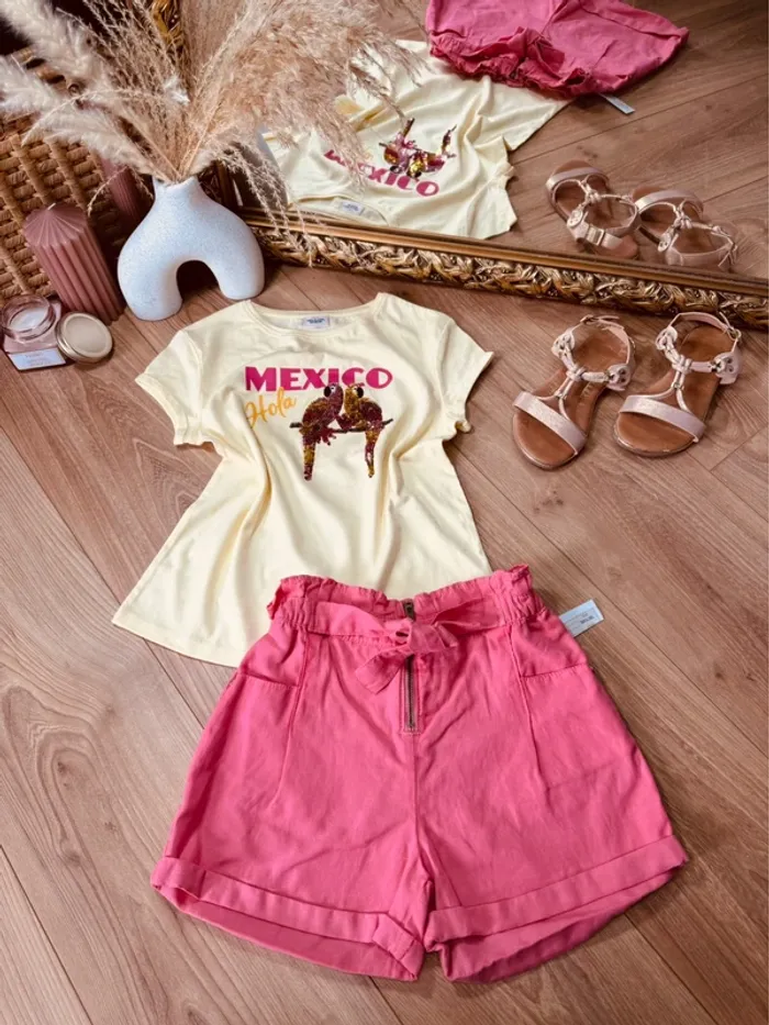 Taille 8 ans tenue 2 pièces été fille TAO jaune rose * Mexico * 🌸 - photo numéro 1
