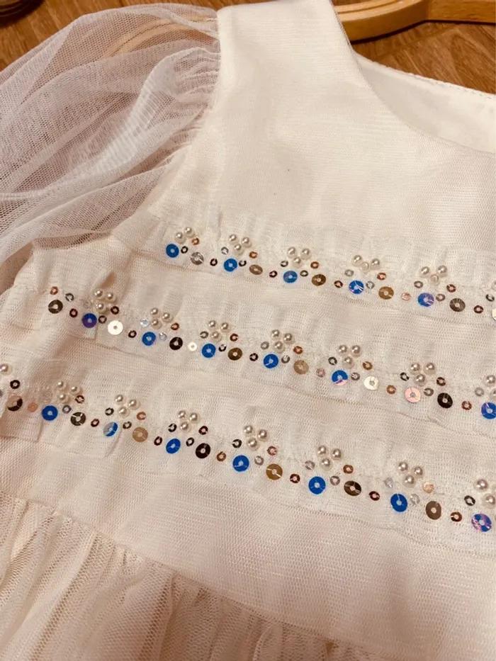 Taille 5-6 ans robe manches 3/4 fille H&M crème ivoire * sequins et tulle * 🩷 - photo numéro 7