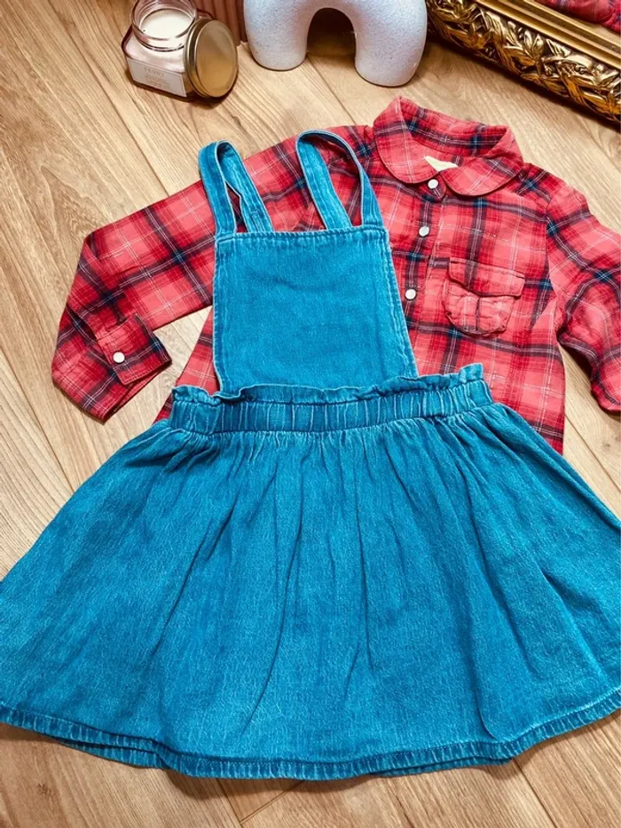 Taille 5 ans tenue 2 pièces fille vertbaudet rouge bleu jean * carreaux * 🩷 - photo numéro 2