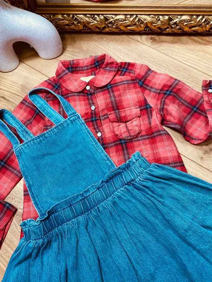 Taille 5 ans tenue 2 pièces fille vertbaudet rouge bleu jean * carreaux * 🩷 - photo numéro 4