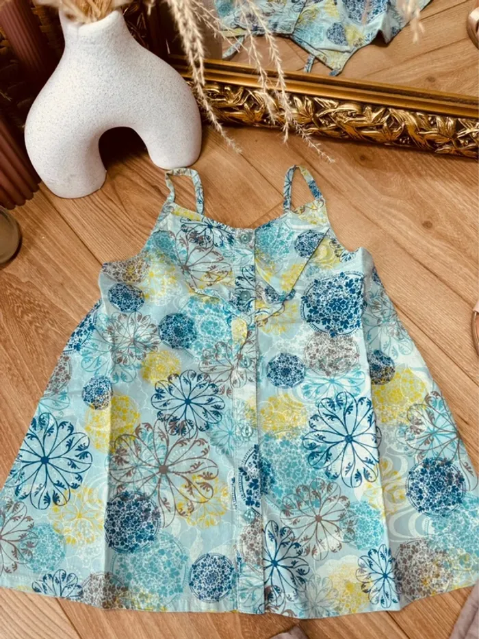 Taille 5-6 ans tenue 3 pièces été fille Orchestra bleue turquoise beige * fleurs * 🌸 - photo numéro 1