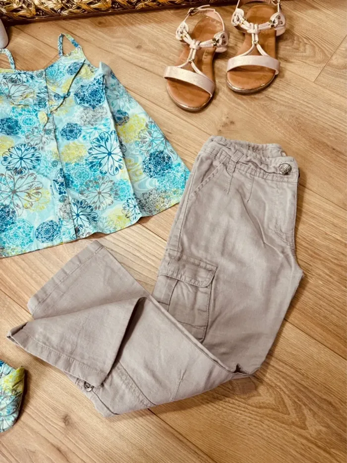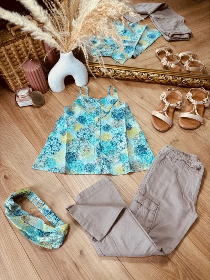 🩷 En excellent état, • top blouse à bretelles • pantalon lin taille réglable 5 ans transformable en pantacourt • bandeau cheveux / tête Pour voir mes autres annonces ↩️ #fille6ansmorganleclerc ✅ Dressing trié par taille avec les # dans mon À PROPOS ⚠️ les chaussures ne sont pas à vendre !!!