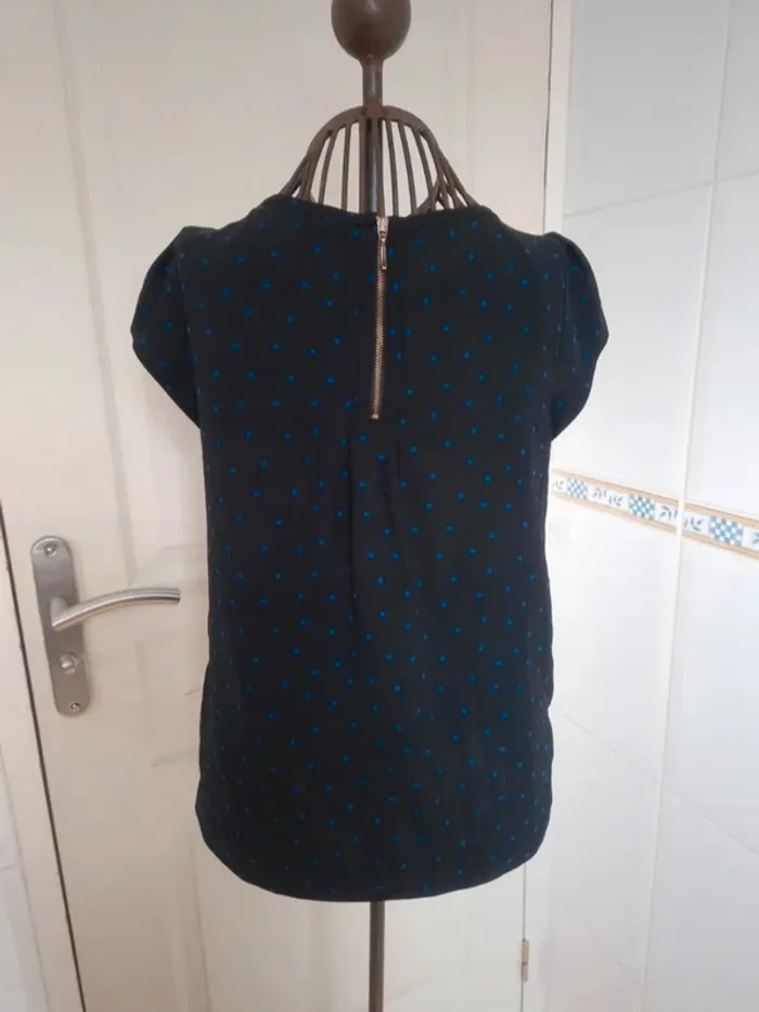 Jolie tee-shirt noir à pois bleu femme zara taille S/36 - photo numéro 4