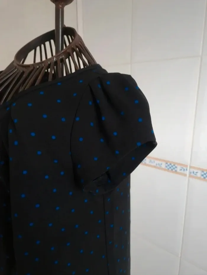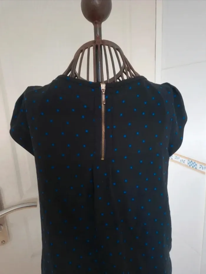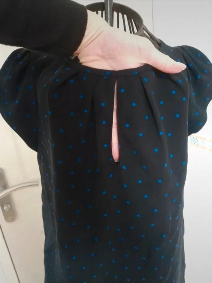 Jolie tee-shirt noir à pois bleu femme zara taille S/36 - photo numéro 7