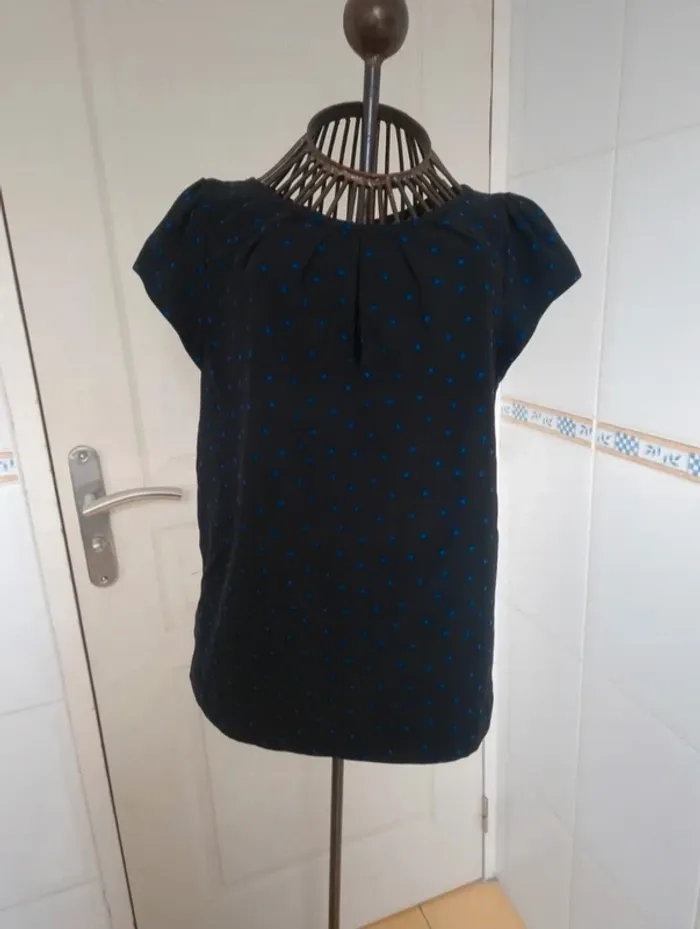 Jolie tee-shirt noir à pois bleu femme zara taille S/36