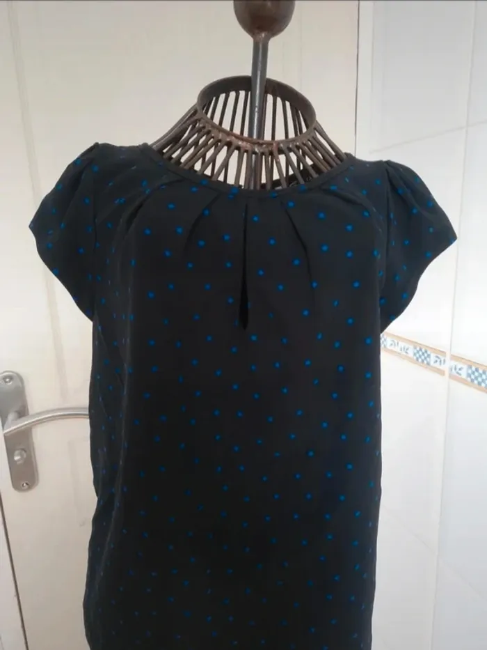 Jolie tee-shirt noir à pois bleu femme zara taille S/36 - photo numéro 2