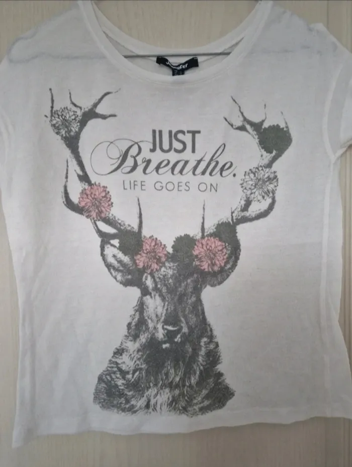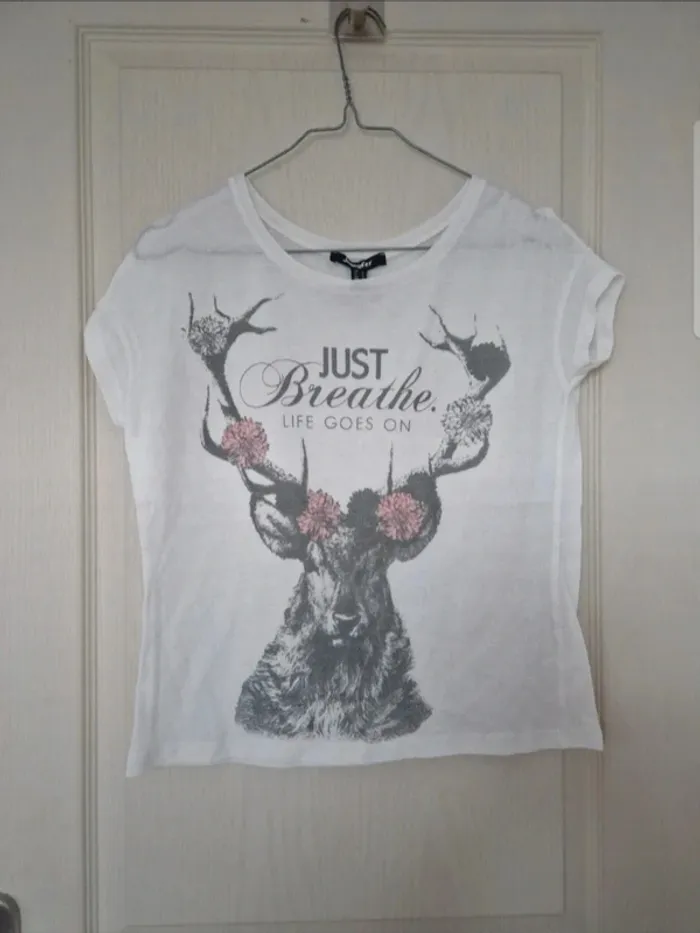 Jolie tee-shirt blanc tête de cerf femme jennyfer taille S/36