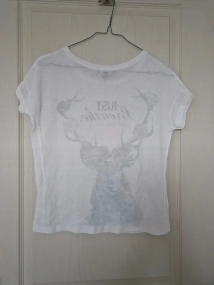 Jolie tee-shirt blanc tête de cerf femme jennyfer taille S/36 - photo numéro 2
