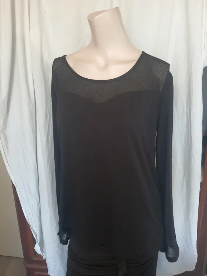 Charmant avec ses parties en voile transparent. 56 cm d'aisselle à aisselle. Longueur 63. @mancheslongues #remisesurleslots €evamargaux46