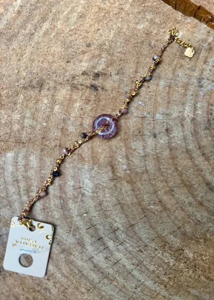 Bracelet habaha Paris fils tissés chaînes perle et pierre - photo numéro 1