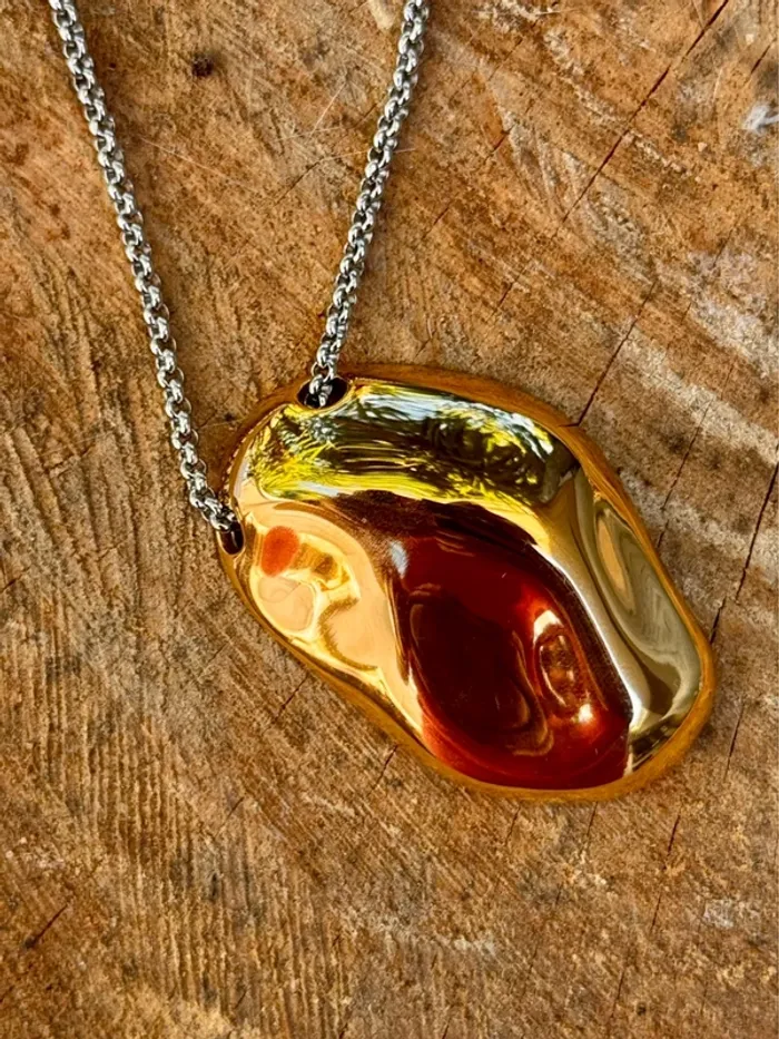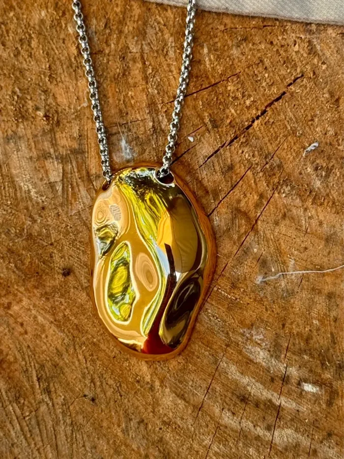 Collier habaha Paris chaîne réglable acier inoxydable argent per pavé or - photo numéro 2