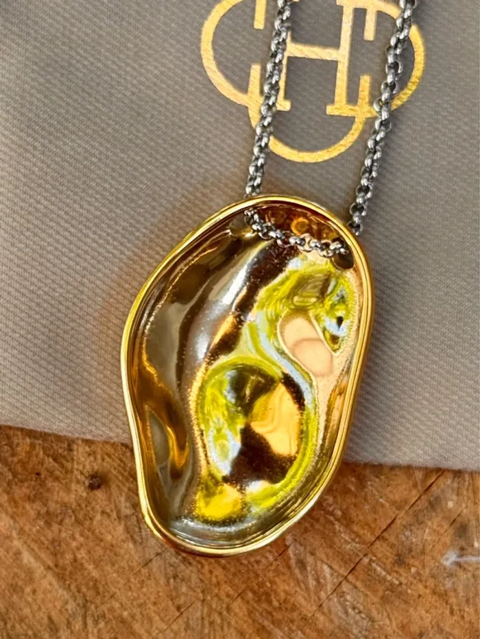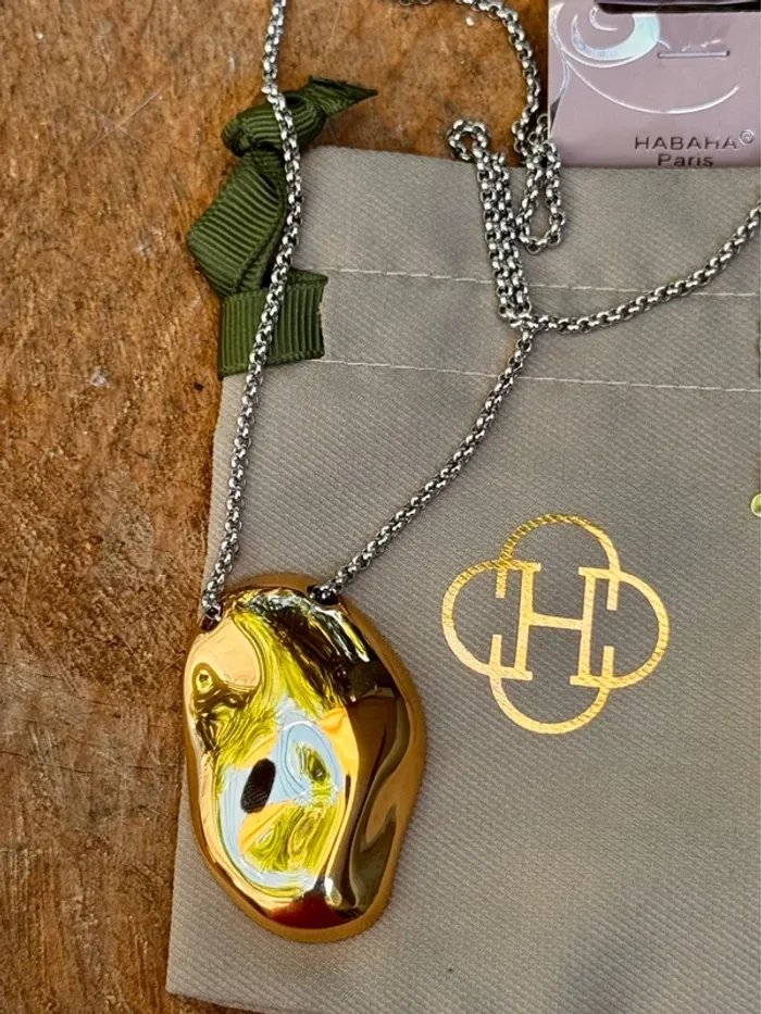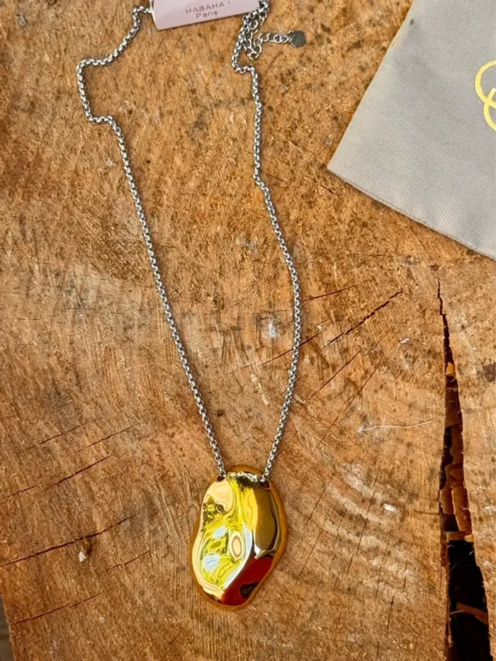 Superbe collier marque HABAHA Paris nouvelle collection 2 tons acier inoxydable or et argent chaîne réglable argent et pavé or Neuf dans pochon