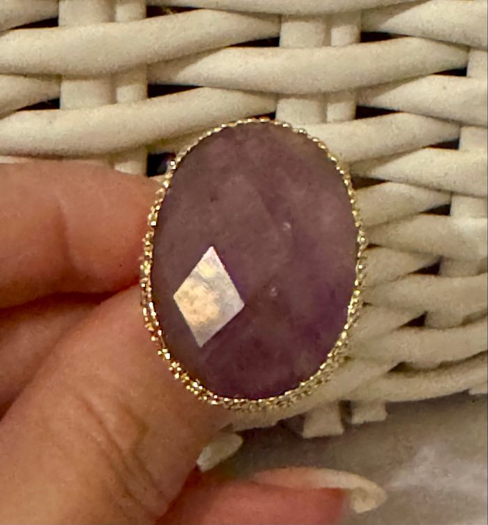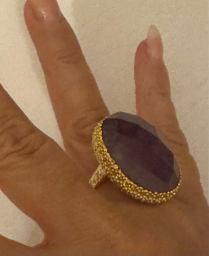 Grosse Bague habaha Paris tout en améthyste et acier inoxydable or réglable  - photo numéro 1
