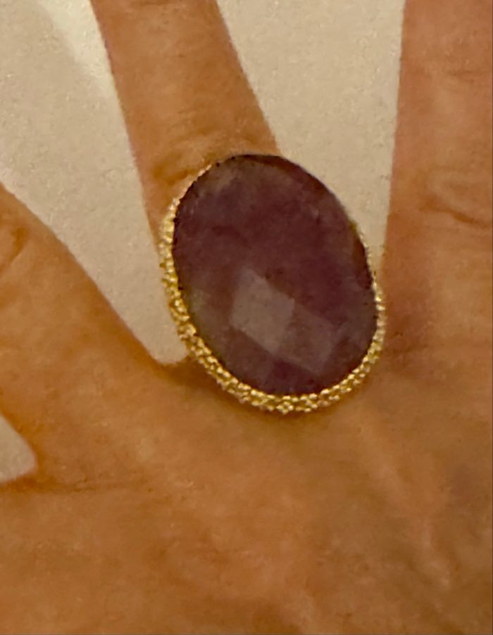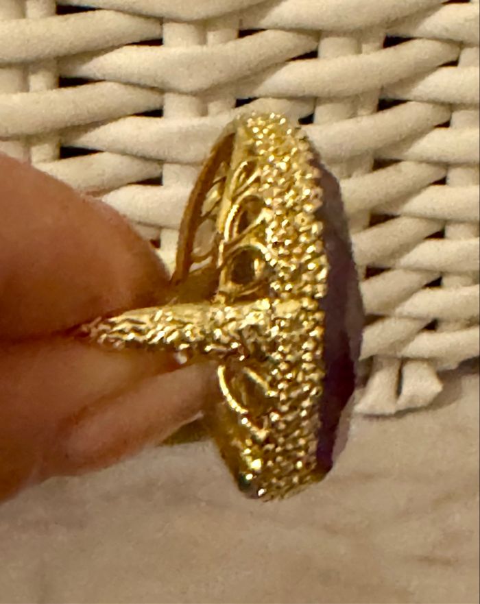 Grosse Bague habaha Paris tout en améthyste et acier inoxydable or réglable  - photo numéro 3