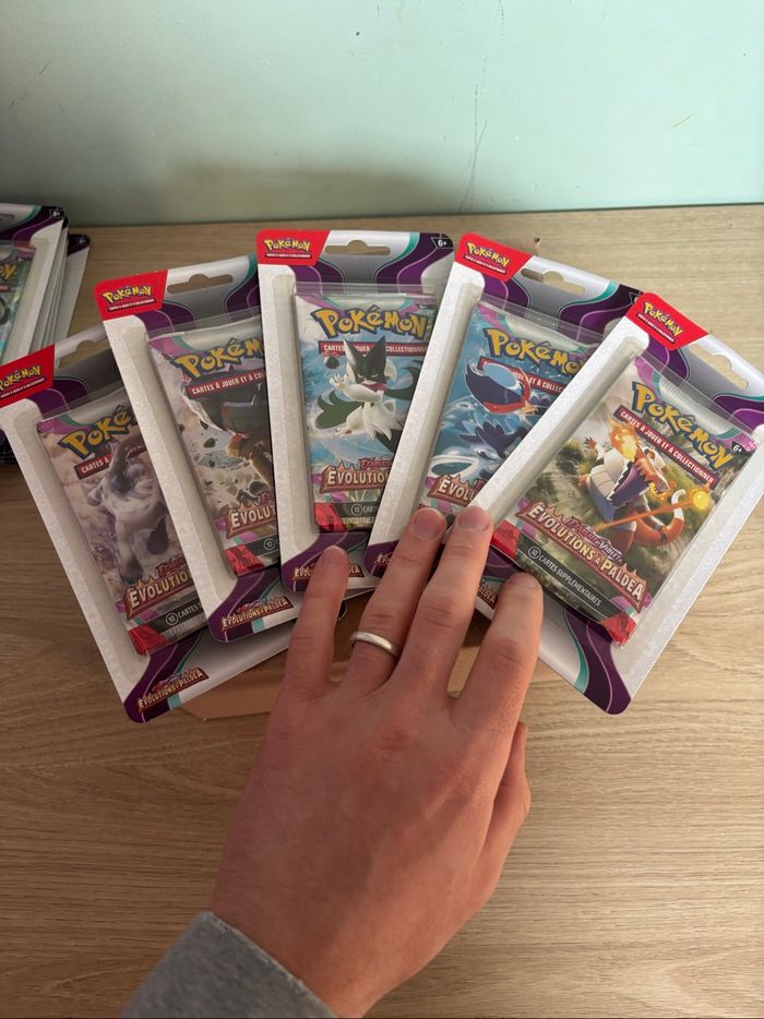 Artset de 5 blisters EV2 Évolution à Paldea neuf en français 🇫🇷 N’hesitez pas à me mp si vous avez des questions ou si vous voulez + de photos 💬 Envoi rapide et soigné 📦✨