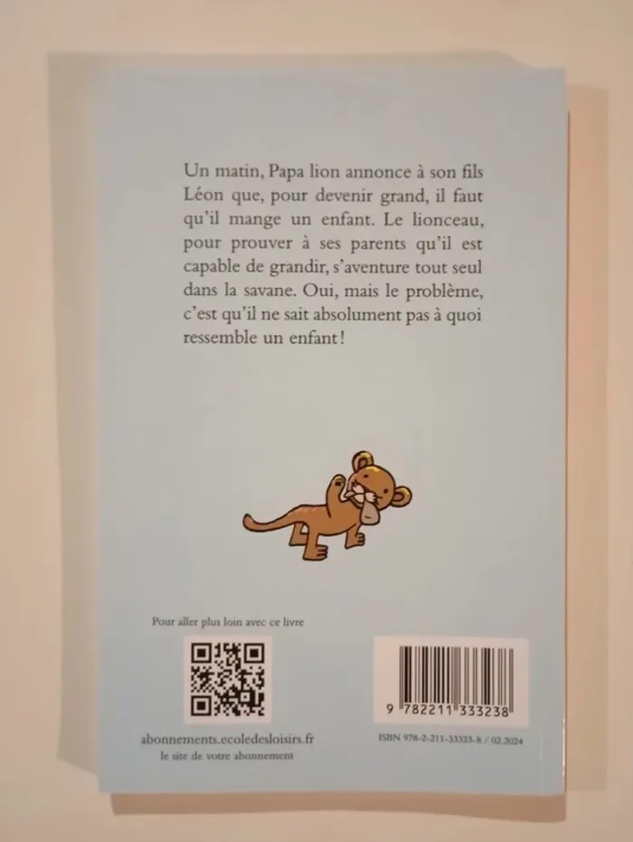 Un matin, papa lion annonce à son fils Léon que, pour devenir grand, il faut qu’il mange un enfant. Le lionceau, pour prouver à ses parents qu’il est capable de grandir, s’aventure tout seul dans la savane. Oui, mais le problème, c’est qu’il ne sait absolument pas à quoi ressemble un enfant ! Editeur : Ecole des Loisirs 88 pages Dimensions : 19 x 13 cm Âge : 6 - 8 ans Livre en excellent état Je vends d'autres livres de l'école des loisirs #phil_peg_écoledesloisirs #écoledesloisirs #humour #livre #animaux #initiation #épreuve #lion #lionceau #grandir