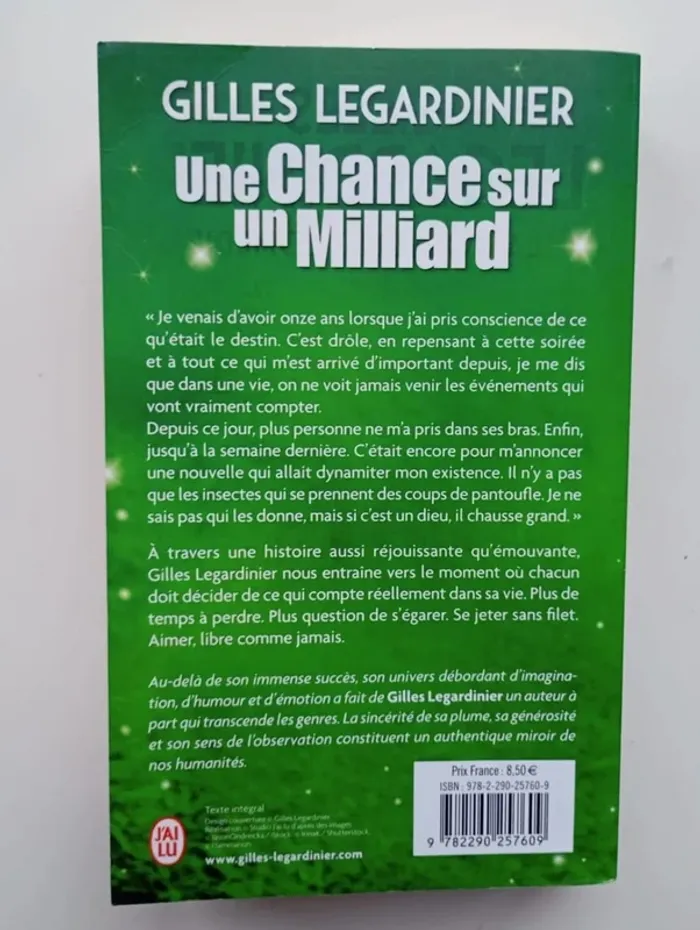 "Je venais d'avoir onze ans lorsque j'ai pris conscience de ce qu'était le destin. C'est drôle, en repensant à cette soirée et à tout ce qui m'est arrivé d'important depuis, je me dis que dans une vie, on ne voit jamais venir les événements qui vont vraiment compter. Depuis ce jour, plus personne ne m'a pris dans ses bras. Enfin, jusqu'à la semaine dernière. C'était encore pour m'annoncer une nouvelle qui allait dynamiter mon existence. Il n'y a pas que les insectes qui se prennent des coups de pantoufle. Je ne sais pas qui les donne, mais si c'est un dieu, il chausse grand." À travers une histoire aussi réjouissante qu'émouvante, Gilles Legardinier nous entraîne vers le moment où chacun doit décider de ce qui compte réellement dans sa vie. Plus de temps à perdre. Plus question de s'égarer. Se jeter sans filet. Aimer, libre comme jamais. Éditeur ‏ : ‎ J'ai Lu 512 pages Dimensions ‏ : ‎ 11 x 18 cm Livre en très bon état Je vends d'autres romans de Gilles Legardinier #phil_peg_gilleslegardinier ou roman feel good #phil_peg_feelgood #gilleslegardinier #romanfeelgood