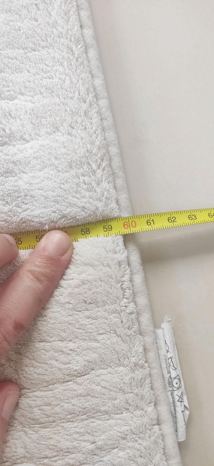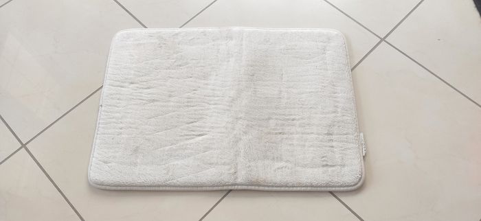Tapis de bain blanc, à mémoire de forme. Très agréable, lavable. Dimensions sur les photos.
