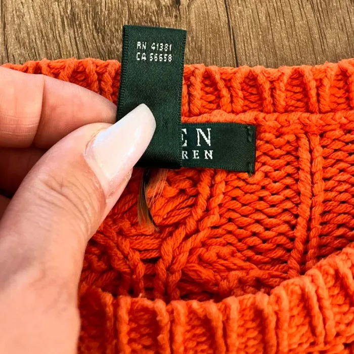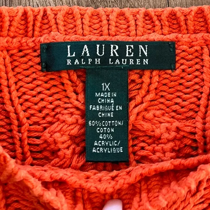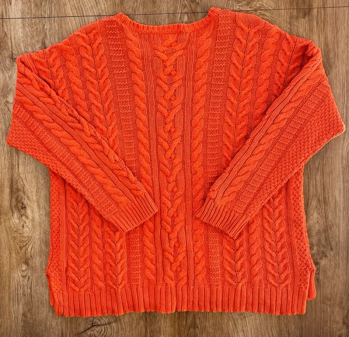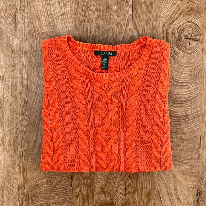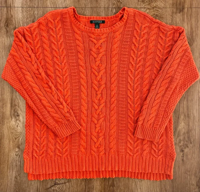 Pull/sweat torsadé/tressé orange Lauren Ralph lauren col rond pour femme, taille XL - photo numéro 1