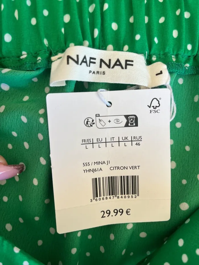 Jupe courte verte à poids blancs, neuve, Naf Naf pour femme, taille L - photo numéro 3