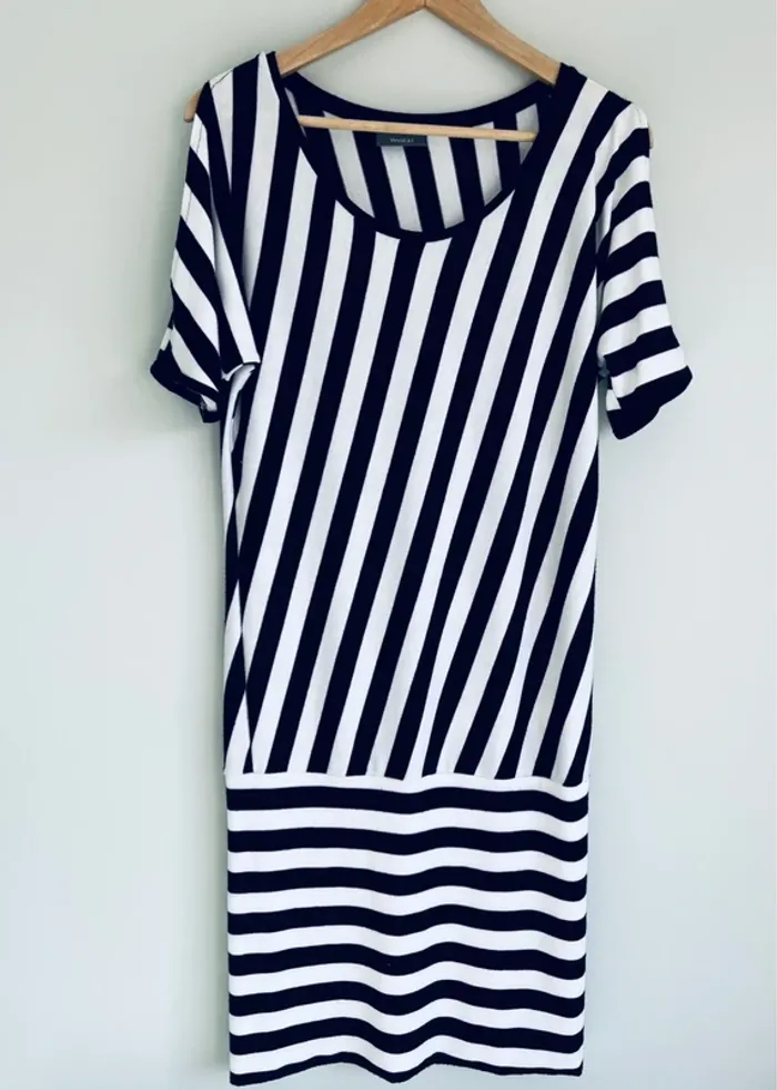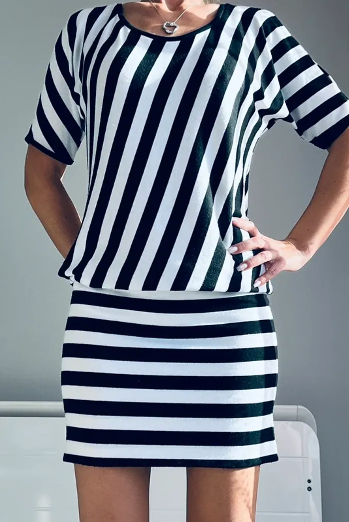 Tunique/robe longue ou courte à rayures neuve, noires et blanches pour femme en taille S - photo numéro 1