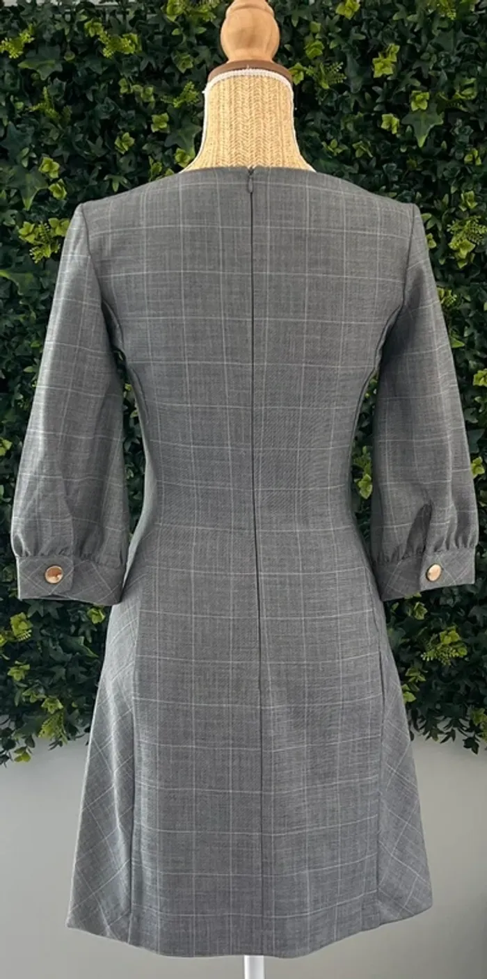 Robe grise et détails blancs à manches 3/4 HM pour femme, taille : 34 - photo numéro 3