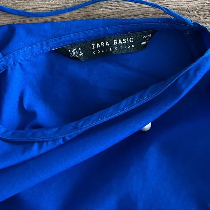 Haut/débardeur/t.shirt bleu avec perles nacrées Zara, femme, taille L - photo numéro 3