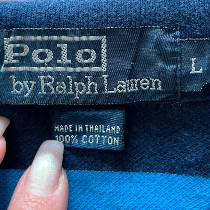 Polo/chemise/t.shirt rayé bleu Ralph Lauren (logo brodé) pour homme, taille L - photo numéro 5