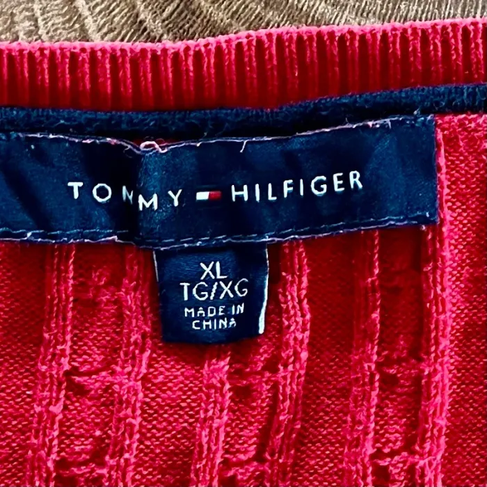 Pull torsadé/tressé rouge Tommy Hilfiger (logo brodé sur la manche), femme, taille : XL - photo numéro 5
