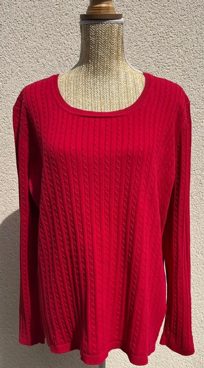 Pull torsadé/tressé rouge Tommy Hilfiger (logo brodé sur la manche), femme, taille : XL - photo numéro 1