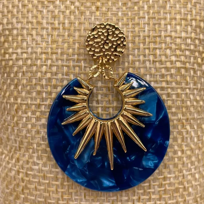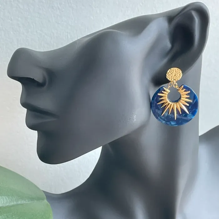 Boucles d’oreilles bleues nacrées pendantes en acier inoxydable (chirurgical) doré