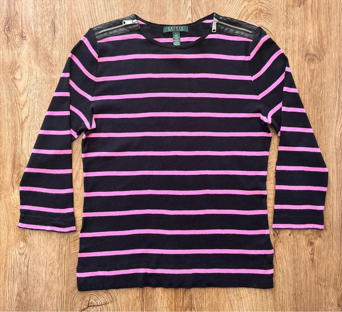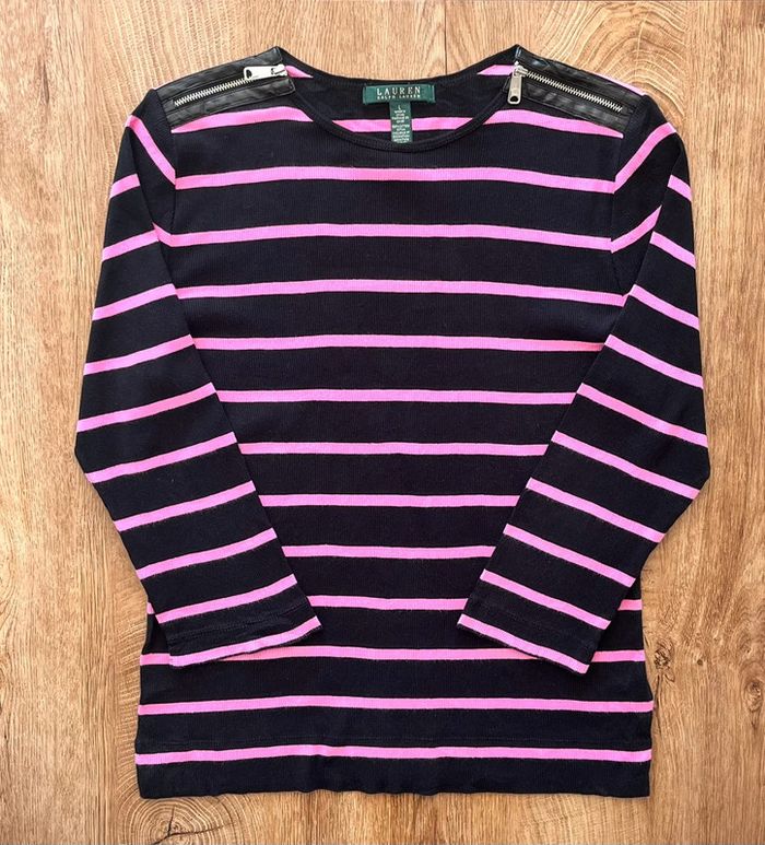 Sweat/pull manches 3/4 noir et rose Lauren Ralph Lauren pour femme, taille L - photo numéro 1