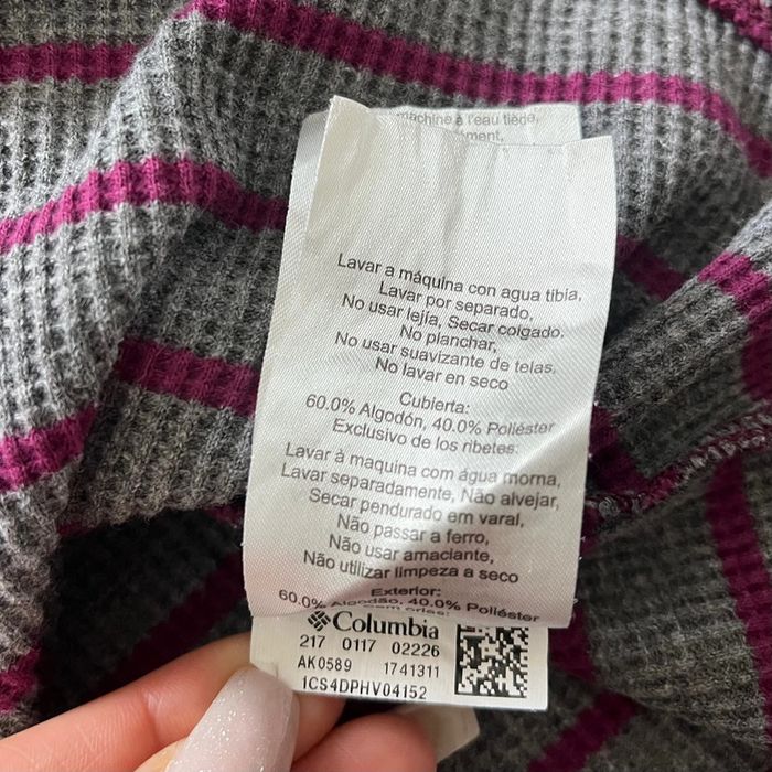 Pull léger/sweat shirt à manches longues rayé gris et violet Columbia pour femme, taille XL - photo numéro 5