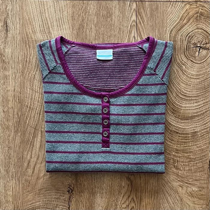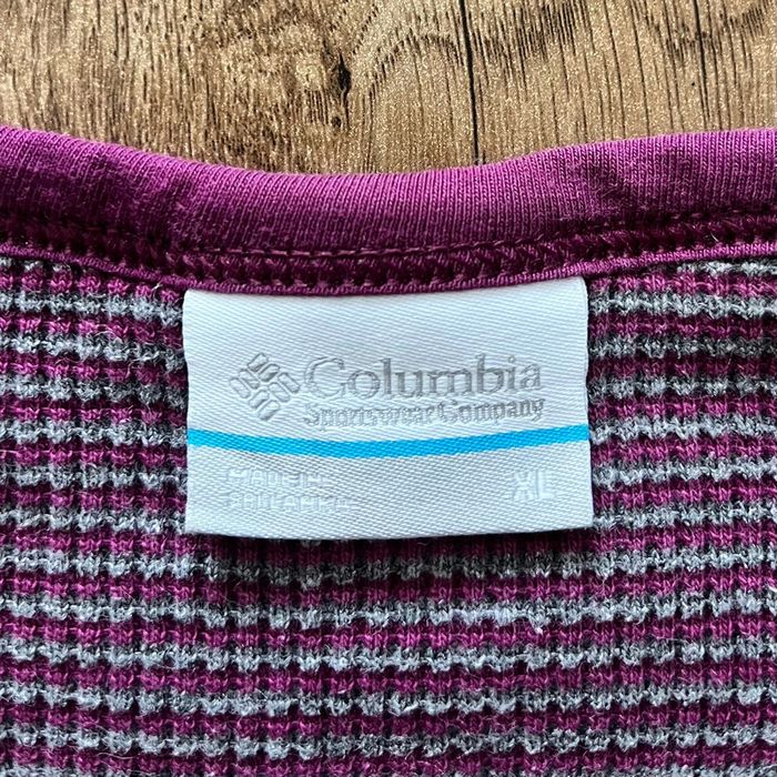 Pull léger/sweat shirt à manches longues rayé gris et violet Columbia pour femme, taille XL