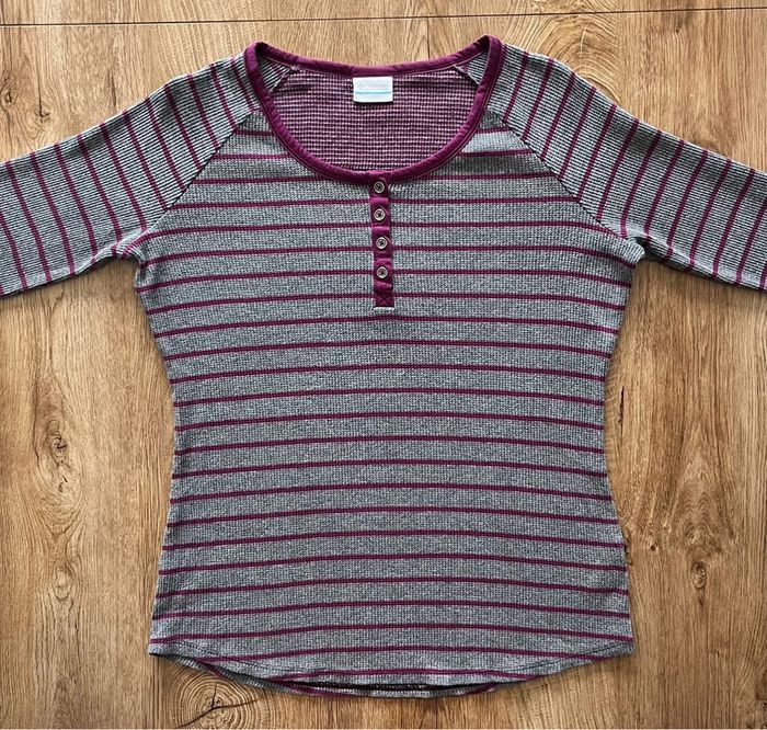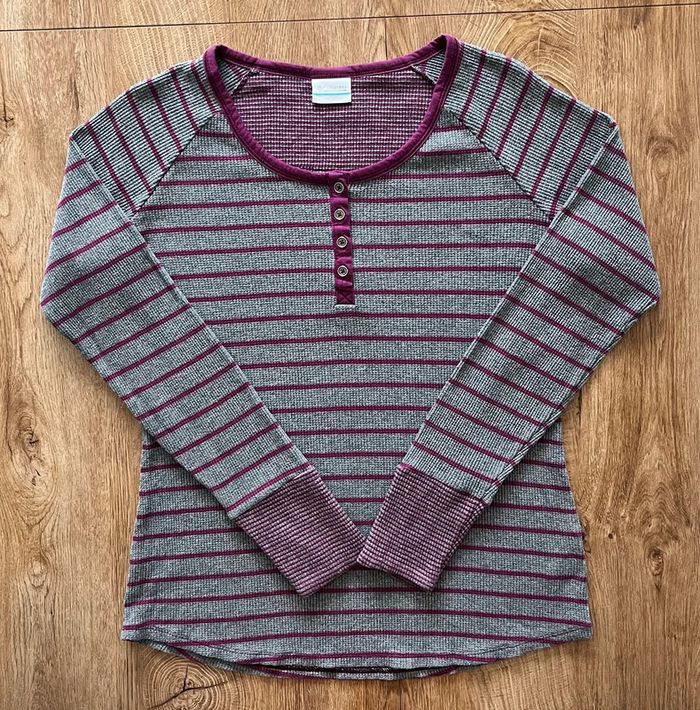 Pull léger/sweat shirt à manches longues rayé gris et violet Columbia pour femme, taille XL - photo numéro 1