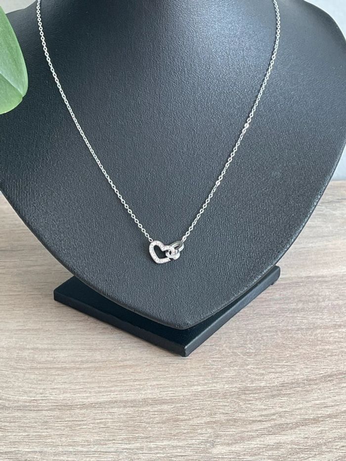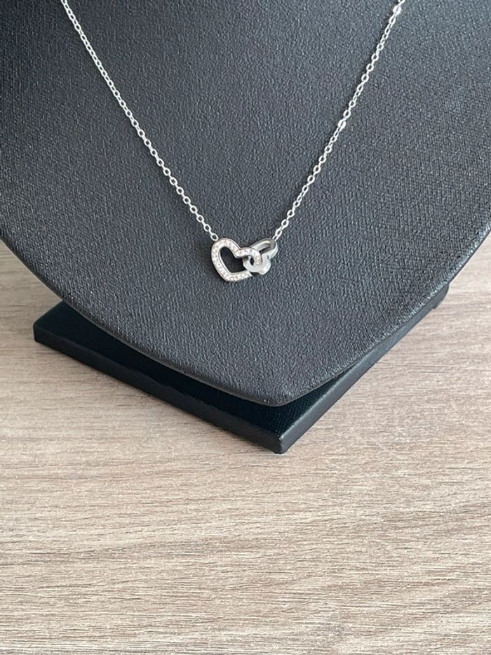 Collier coeurs entrelacés scintillants de strass en acier inoxydable hypoallergénique argenté - photo numéro 1
