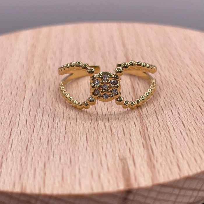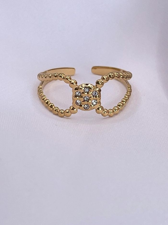 Bague avec strass réglable en acier inoxydable (acier chirurgical) et hypoallergénique dorée - photo numéro 1