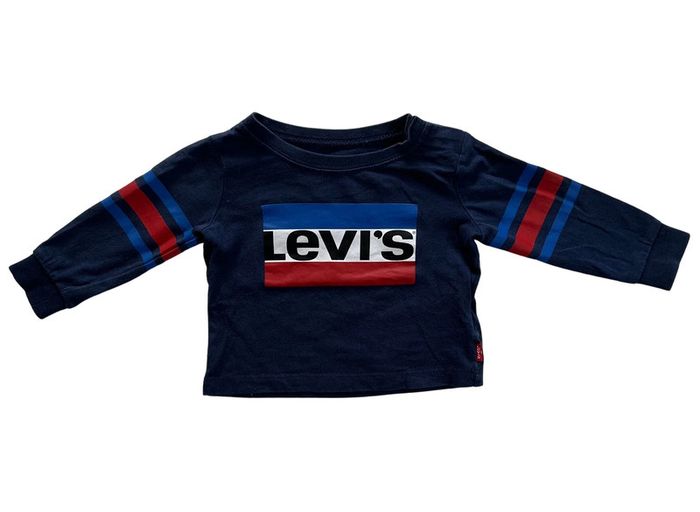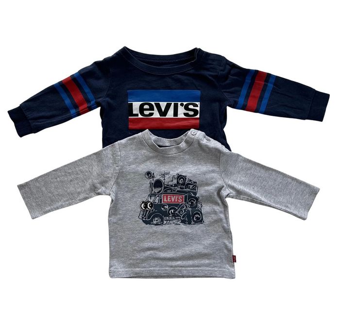 Lot de deux t.shirt à manches longues bleu marine et gris Levi's, 6 mois - photo numéro 1