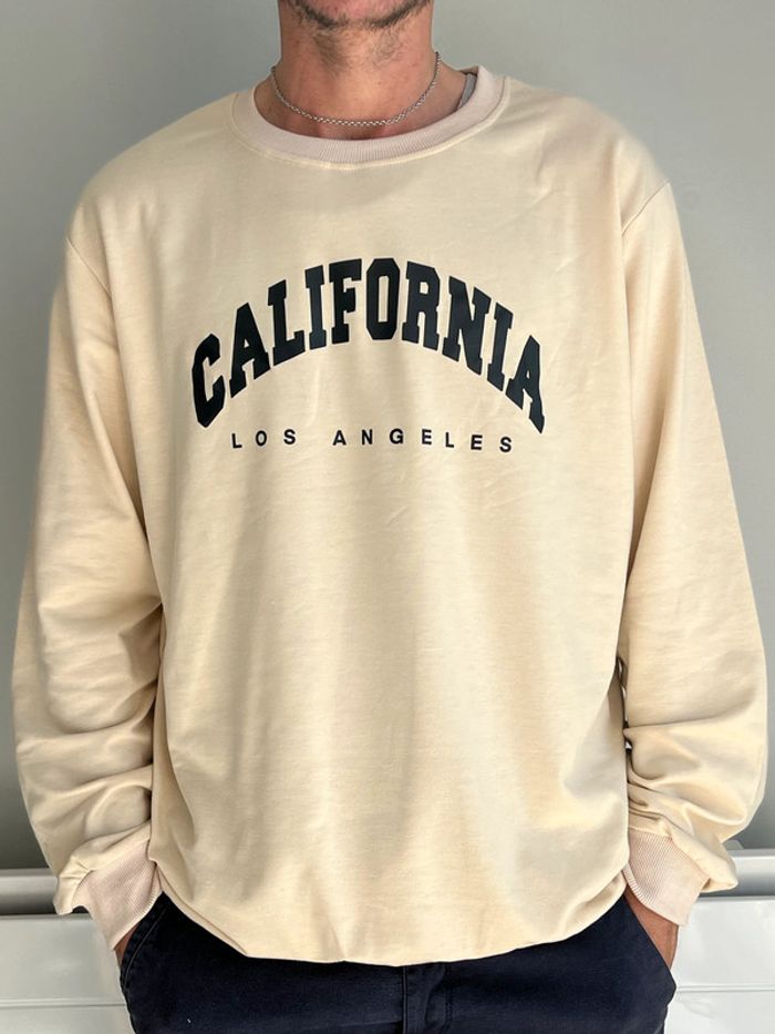 Pull léger California Los Angeles beige crème pour homme en taille L