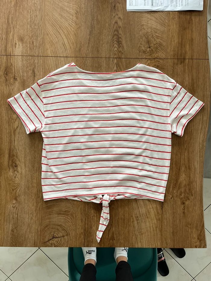 T.shirt blanc à rayures rouges Camaïeu pour femme, taille L - photo numéro 3
