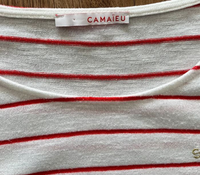 T.shirt blanc à rayures rouges Camaïeu pour femme, taille L - photo numéro 1